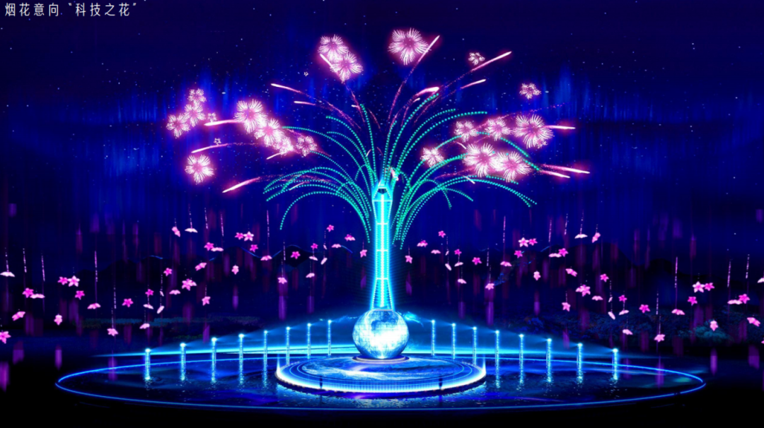 Taking distant space and time as its inspiration, this "Fireworks Light Tower" uses "Culture + Technology" to materialize the abstract concept of a "light year" into a palpable visual spectacle, a genuine world-first in the history of fireworks stage design.