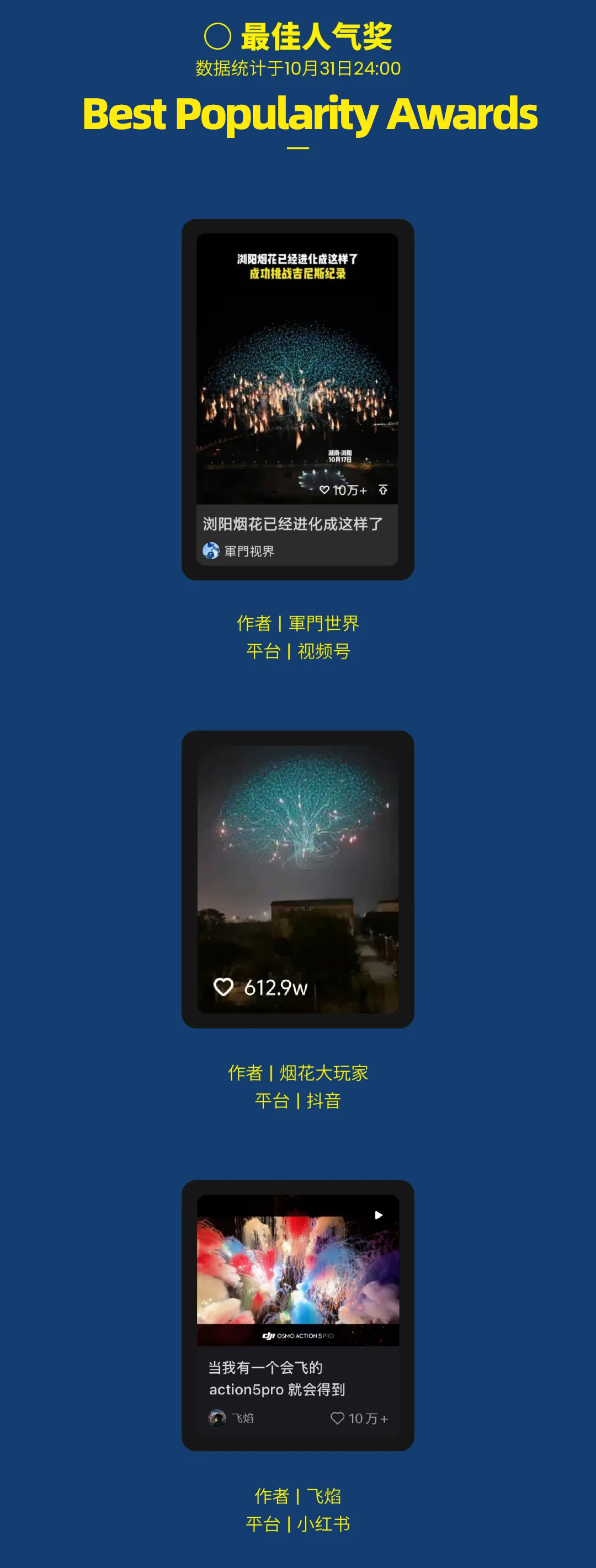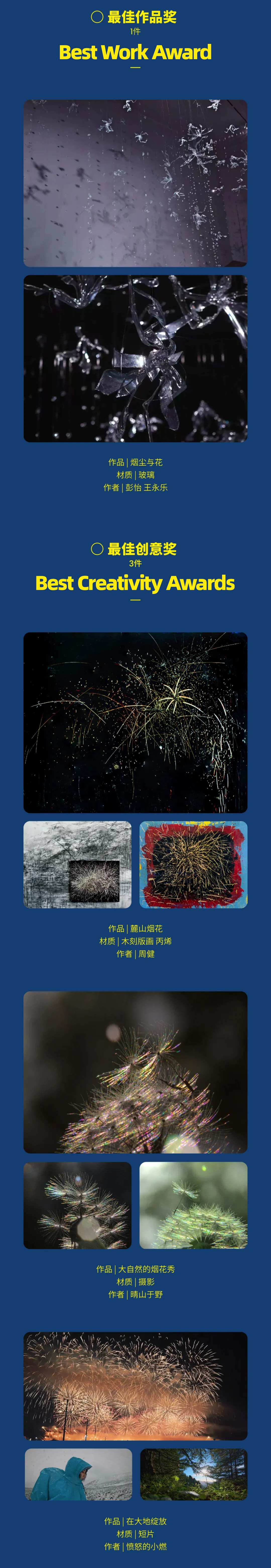 Fireworks bloom into diverse artistic expressions through the ingenuity of different creators, outlining countless captivating narratives. The Best Work Award, Best Creativity Awards, and Sparkling Work Awards of this competition were evaluated based on artistic quality, creativity, and completeness as core criteria. After multiple rounds of rigorous selection and detailed review by a professional jury, the final winners were determined.
