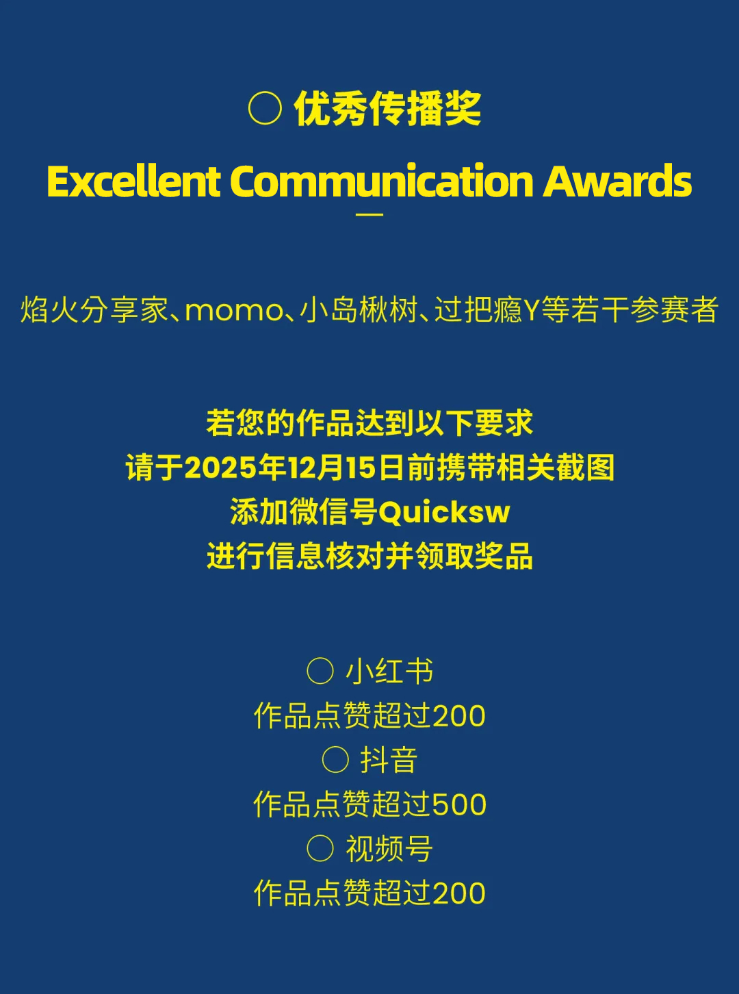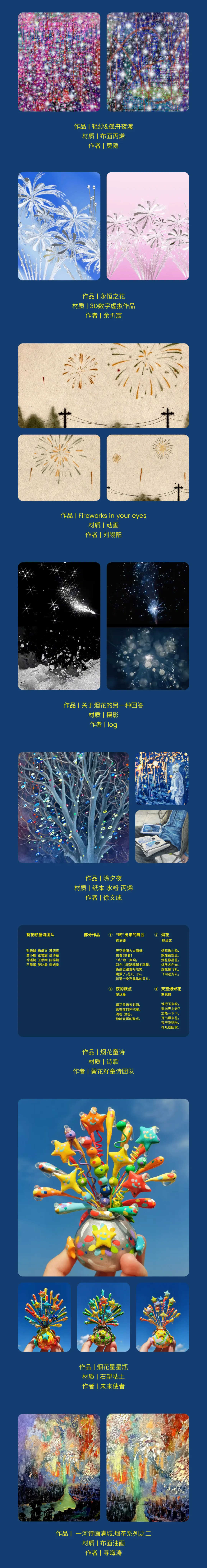 The brilliance that fireworks have carried for centuries is reinterpreted in these works. They break through geographical and cultural boundaries, using brushes, fabrics, digital codes, and even natural materials to embark on a journey of beauty and creativity. This competition ultimately selected 1 Best Work Award, 3 Best Creativity Awards, 20 Sparkling Work Awards, 3 Best Popularity Awards, along with several Excellent Communication Awards and Outstanding University Organization Awards.
